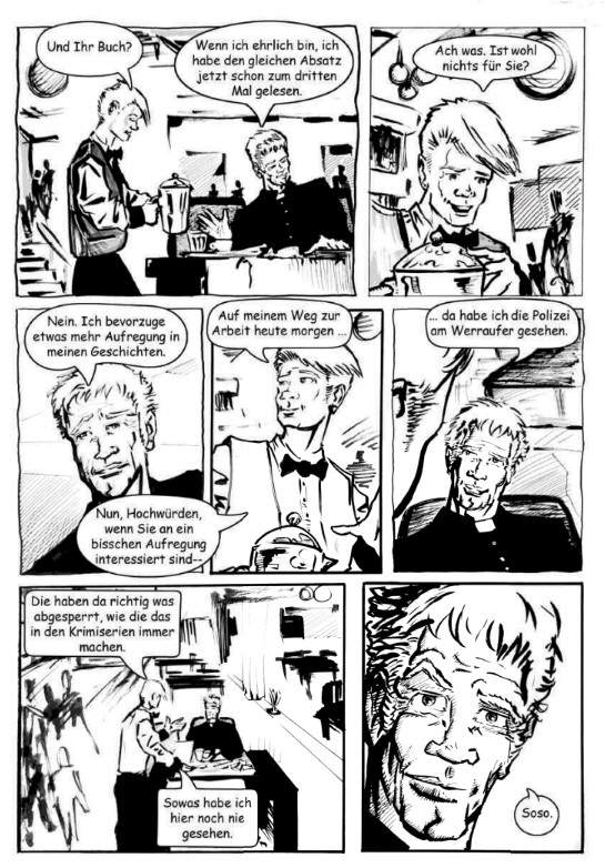 Als wäre er von Gott zur Unterstützung berufen, urlaubt zufällig der römisch-katholische Priester Brown aus England in der Stadt. Dass er bei der Klärung des Falls hilft, ist für ihn als passionierter Amateurdetektiv eine Selbstverständlichkeit.Martin Schülbe, Autor und Zeichner dieser Graphic Novel, verbrachte die ersten drei Jahrzehnte seines Lebens in dieser Stadt.