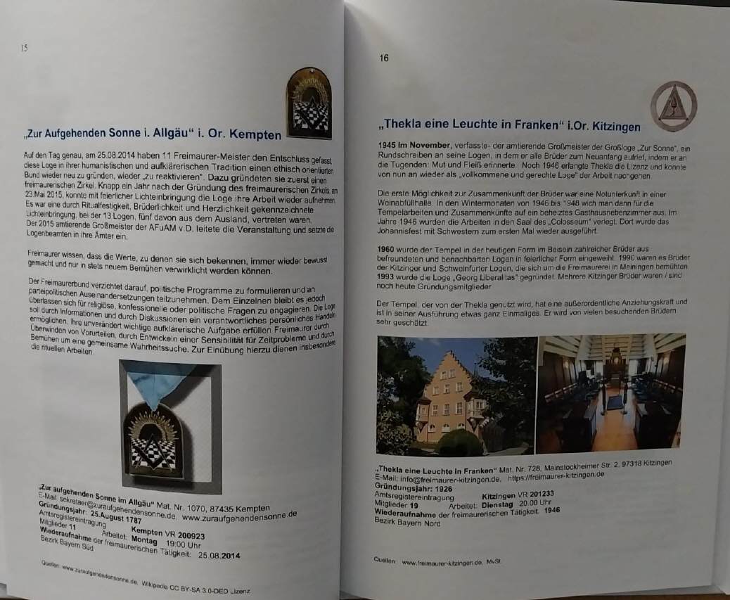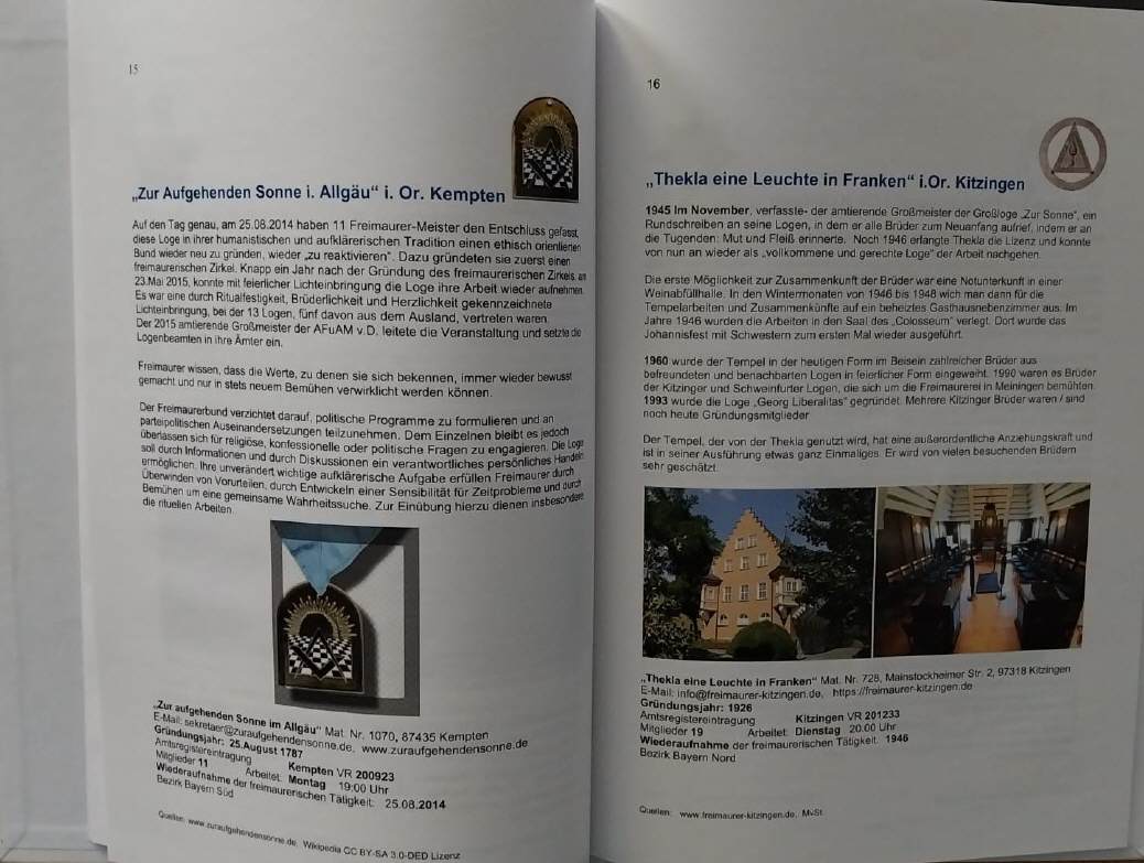 Jede der 50 Logen im bayrischen Distrikt wurde darin beschrieben und vorgestellt.